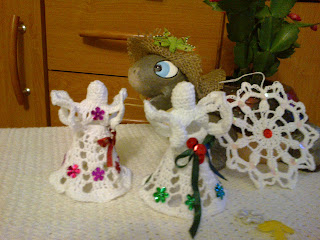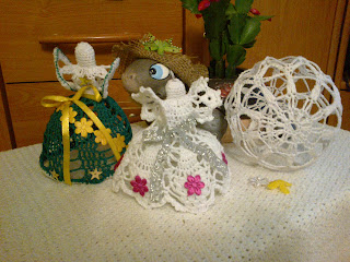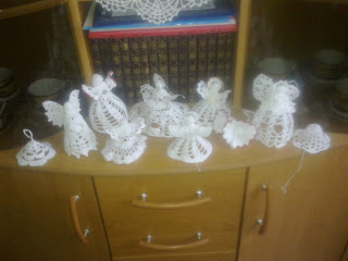 Szydełko odłożyłam już ponieważ tyle ozdób jakie w tym roku wykonałam zaskoczyły nawet mnie. Gdy przyszło mi to wszystko usztywnić to był problem nie miałam już na czym formować mojej arami aniołków, ale poradziłam sobie.
