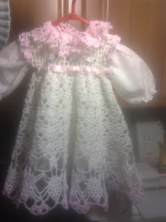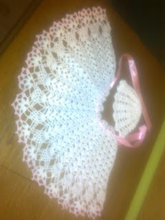 To sukieneczka,pelerynka i czapeczka dla mojej wnusi Majeczki. Pierwsze poważne i bardzo ważne dzieło. Wyglądała prześlicznie z czego jestem bardzo zadowolona :)